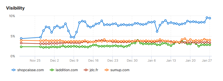 Suit précisément le positionnement SEO et analyse la performance des mots-clés.
